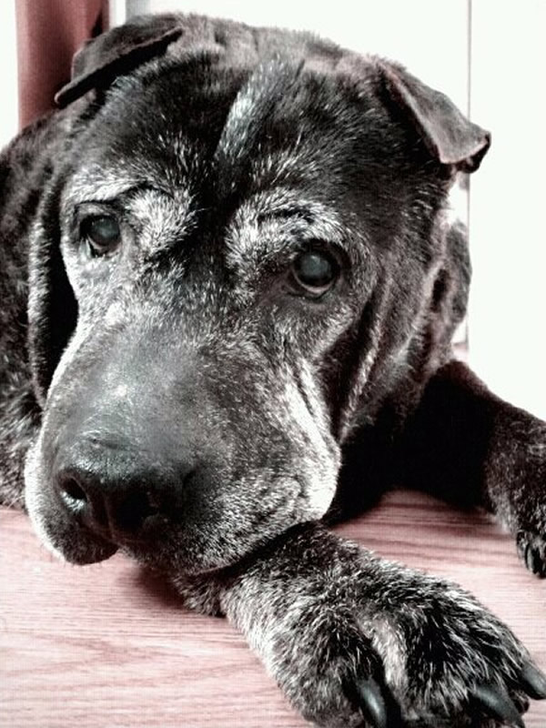 Not to say that my life has been all roses and daisies. Unfortunately, as a breed, Shar Pei has tons of medical problems and I inherited them all. I’m currently blind and years of ear infections and problems have left me deaf.  I’ve learned to navigate the house and neighborhood with the help of my seeing-eye people and a constant routine. I struggled with allergies and skin problems throughout most of my life as well due to my wrinkles and dry skin. I’ve constantly had issues with my paws — they get inflamed very easily.