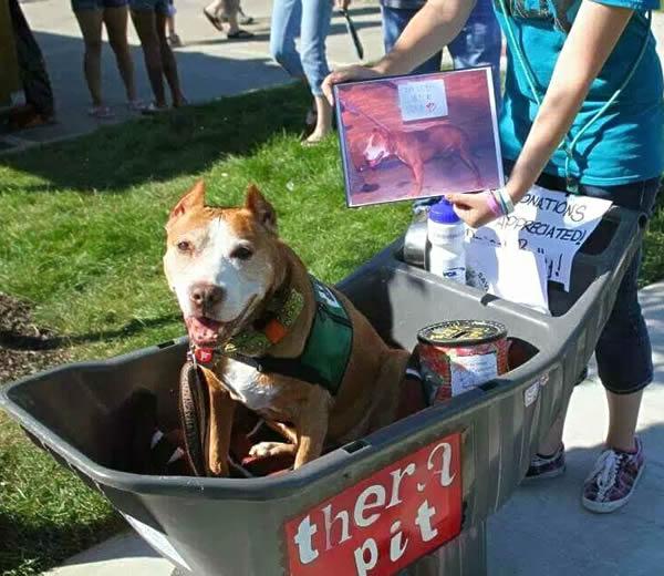 So during the last 9 months of my life, I continued to work as much as I was able to at the Mental Health Center, and attended events as an Ambassabull. I even had a special Ther-a-Pit wheelbarrow I rode in and later my own stroller to ride in when I got too weak to walk far.